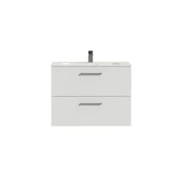 Tiger Studio Badkamermeubel 80 Cm Hoogglans Wit Met Wastafel Polybeton Mat Wit Greep Rvs Plat
