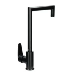 De Absolut keukenkraan Fasso met hendel Zwart is een blikvanger in je keuken met de hoge hoekige U-vormige uitloop. De strakke vormgeving en mat zwarte afwerking passen perfect in jouw landelijke of industriële keuken. De kraan kun je ook verkrijgen in chroom of grafiet. Met de kraan ga je ook in de tijd mee door de ingebouwde waterbespaarder in de sproeikop. Zo bespaar je op je waterverbruik. Dat is niet alleen goed voor het milieu, maar ook voor je portemonnee. De hoogte van maar liefst 48 cm in combinatie met de 360° draaibaarheid van de uitloop zorgen dat je veel ruimte in je gootsteen hebt. Handig als je een grote pan moet vullen! Met de eenhendelbediening meng je eenvoudig met 1 hand het water naar de gewenste temperatuur. De keramische schijven maken draaien soepel en nauwkeurig en vergen bovendien weinig onderhoud. Ook veeg je kalk eenvoudig met je vingers van de uitloop af doordat vuil en kalk zich niet makkelijk hecht aan de siliconen noppen in de sproeikop. Met de meegeleverde flexibele aansluitslangen en bevestigingsmateriaal sluit je deze kraan eenvoudig zelf aan. Op de kraan krijg je 5 jaar garantie.