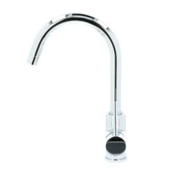 De Absolut keukenkraan Fasso met hendel Zwart is een blikvanger in je keuken met de hoge hoekige U-vormige uitloop. De strakke vormgeving en mat zwarte afwerking passen perfect in jouw landelijke of industriële keuken. De kraan kun je ook verkrijgen in chroom of grafiet. Met de kraan ga je ook in de tijd mee door de ingebouwde waterbespaarder in de sproeikop. Zo bespaar je op je waterverbruik. Dat is niet alleen goed voor het milieu, maar ook voor je portemonnee. De hoogte van maar liefst 48 cm in combinatie met de 360° draaibaarheid van de uitloop zorgen dat je veel ruimte in je gootsteen hebt. Handig als je een grote pan moet vullen! Met de eenhendelbediening meng je eenvoudig met 1 hand het water naar de gewenste temperatuur. De keramische schijven maken draaien soepel en nauwkeurig en vergen bovendien weinig onderhoud. Ook veeg je kalk eenvoudig met je vingers van de uitloop af doordat vuil en kalk zich niet makkelijk hecht aan de siliconen noppen in de sproeikop. Met de meegeleverde flexibele aansluitslangen en bevestigingsmateriaal sluit je deze kraan eenvoudig zelf aan. Op de kraan krijg je 5 jaar garantie.