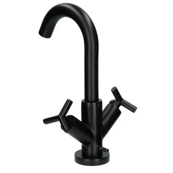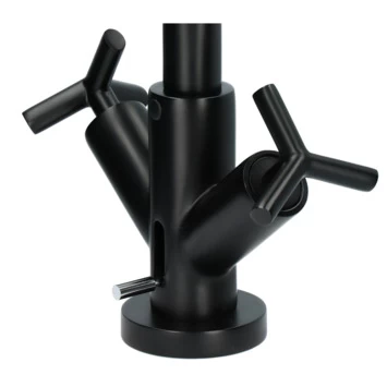 De Absolut wastafelkraan Post 2-knops Zwart is een functionele kraan met een stoere afwerking. De ronde U-vormgegeven kraan in mat zwarte afwerking met stevige draaiknoppen geeft een robuuste uitstraling in je badkamer. Het past perfect in jouw landelijk, industrieel of retro interieur. De kraan is ook in chroom verkrijgbaar, daarmee kies je altijd de juiste kleur bij jouw stijl. De hoogte van maar liefst 31 cm in combinatie met de 360° draaibaarheid van de uitloop geeft veel ruimte in je wastafel. Dat is handig als je je handen of haren wil wassen. De draaiknoppen bedien je soepel door de keramische schijven die bovendien weinig onderhoud van je vergen. Met de trekhendel aan de achterkant van de kraan bedien je eenvoudig de afvoerplug. Met je handen in te heet of vies water om de afvoer te openen is voorgoed verleden tijd! De set sluit je makkelijk zelf aan met de meegeleverde flexibele aansluitslangen, bevestigingsmateriaal, afvoerplug, waste met waste inrichting en montagehandleiding. Mocht je de kraan kopen, dan profiteer je ook van 5 jaar fabrieksgarantie.