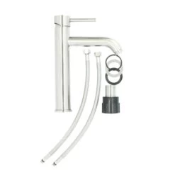 De Atlantic wastafelkraan Spencer met hendel RVS bestaat uit een RVS wastafelkraan van 25,5 cm hoog met 2 flexibele aansluitslangen, bevestigingsmateriaal en montagehandleiding. De Spencer wastafelkraan heeft een handige eenhendelbediening, waarmee je eenvoudig met 1 hand de kraan naar de gewenste temperatuur draait. Je bespaart water door de ingebouwde eco-klik. De ingebouwde weerstand in de hendel zorgt ervoor dat je de kraan niet direct op de hoogste straalstand zet. Wens je toch een hardere straal, dan zet je de hendel gewoon verder open. Eco start zorgt ervoor dat als de hendel in het midden staat, alleen koud water door de kraan stroomt. In tegenstelling tot standaard mengkranen waarbij warm water gemengd wordt in de middelste stand. Zo bespaar je naast water door eco-klik dus ook (warmte)energie door eco start. Aan de anti-kalk perlator hecht kalk zich moeilijk vast en veeg je er makkelijk met de hand af. Deze rechte wastafelkraan heeft een stoere uitstraling door de geborstelde afwerking. Gebruik alleen water en een zachte doek om de kraan schoon te maken. Gebruik geen schurend, bijtend, azijnhoudend of agressief schoonmaakmiddel. Besluit je deze kraan te kopen? Dan heb je 5 jaar garantie.