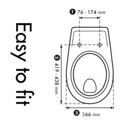 Door de verstelbaarheid in de scharnieren en de ovale vorm past de bril op de meeste gangbare toiletpotten, toch raden we je aan de lijntekening goed te bekijken zodat hij netjes past op jouw pot. Tenslotte monteer je de bril met het doordachte ‘Fastfix’ bevestigingssysteem eenvoudig vanaf de onderkant.