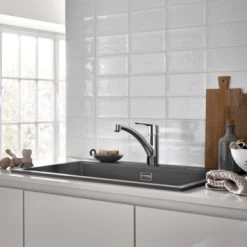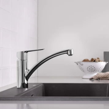 De iconische keukenfavoriet GROHE Start eengreeps keukenkraan is opnieuw ontworpen om het gebruik nog aangenamer en gemakkelijker te maken en vormt hierdoor een ideale upgrade. Deze designklassieker is opgefrist om te voldoen aan de eisen van moderne keukens en heeft nu een slank, modern profiel en beschikt over meer gebruikscomfort. Deze keukenkraan is ontworpen voor eengatsinstallatie en de lage uitloop kan soepel 140° worden gedraaid, wat meer flexibiliteit biedt aan de spoelbak zonder dat je op de muren spettert. De mousseur kan eenvoudig worden verwisseld met behulp van slechts een muntje – er komt dus geen gereedschap aan te pas. Binnenin zorgt de technologie van het GROHE SilkMove ES-cartouche voor een levenslange soepele en nauwkeurige bediening terwijl GROHE Zero geïsoleerde binnenwaterwegen ervoor zorgt dat je drinkwater lood- en nikkelvrij is. Een instelbare debietbegrenzer bespaart water en geld terwijl een geïntegreerde temperatuurbegrenzer verbranding voorkomt. De glanzende GROHE StarLight chroom afwerking is krasbestendig en zorgt voor een oogverblindend oppervlak dat lang meegaat. Met de GROHE QuickFix Plus-set kan de keukenkraan eenvoudig en snel worden geïnstalleerd, zonder dat je gereedschap nodig hebt. Voor deze kraan wordt een minimale druk van 1,0 bar aanbevolen.