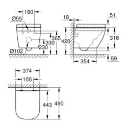 De Grohe Wandcloset Ceramic Compact verkort is een compact toilet met een afmeting van 490 x 374 mm en past zo in elke kleine ruimte. Deze wc bevat slimme functies voor extra hygiëne en comfort. De randloze technologie ervoor dat bacteriën geen kans krijgen en de GROHE Triple Vortex- spoeling met drie wateruitlaten zorgt voor een stille, krachtige en spatvrije spoeling die elke hoek van de pot reinigt. Het hangende ontwerp is ideaal om de vloer vrij te houden en het gevoel van ruimte te maximaliseren. Het spoelvolume is 5/3L en het toilet wordt geleverd met een bevestigingsset.