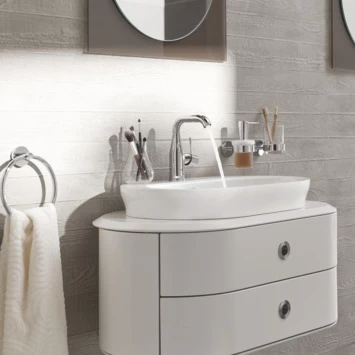 Met GROHE wastafelkraan Essence M-size met hendel en waste Chroom heb je veel ruimte bij je wastafel door de medium hoge uitloop van 19,3 cm. Ook de 360° draaibare uitloop geeft je extra ruimte, comfort en flexibiliteit. Met de eenhendelbediening zet je gemakkelijk met 1 hand de kraan aan. Door de GROHE SilkMove keramische schijven stel je vooraf soepel en nauwkeurig de temperatuur in. Ook kun je daarmee exacter het watervolume regelen. Bovendien vergen deze keramische schijven weinig onderhoud. Dankzij de ingebouwde GROHE EcoJoy Technologie bespaar je flink op je waterverbruik: zelfs met een volle waterstraal verbruik je slechts maximaal 5,7 l/min! De AquaGuide mousseur is draaibaar, zo voorkom je gespetter over je wastafel heen. Met de hendel van de trekwaste aan de achterzijde van de kraan zet je eenvoudig het afvoer open of dicht. Met je handen in te heet of vies water is voorgoed verleden tijd! De installatie van de kraan doe je eenvoudig zelf met het vereenvoudigde GROHE QuickFix snelbevestigingssysteem. Met de meegeleverde flexibele aansluitslagen, waste en wasteinrichting, afvoerplug, bevestigingsmateriaal en montagehandleiding kom je niets tekort! De kraan geeft met zijn U-vormige uitloop op een flesvormige basis een ingetogen retro uitstraling aan je interieur. De GROHE StarLight chromen afwerking is bestendig en blijft met het juiste onderhoud jaren glanzend mooi in je badkamer. Besluit je deze kraan te kopen? Dan profiteer je van 5 jaar fabrieksgarantie. De kraan is ook verkijgbaar in de kleuren supersteel (RVS), Cool Sunrise (geborsteld messing), Nickel (geborsteld nikkel), Warm Sunset (geborsteld koper) en Hard Graphite (geborsteld grafiet). Zo kies je altijd de juiste kleur naar jouw smaak!