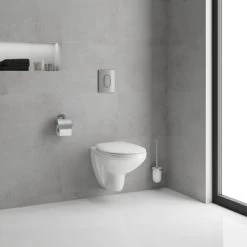 Het Grohe Wc-pack Bau Arena 4 in 1 is een complete set waarin alles zit wat je nodig hebt: een hangende wc en de stijlvolle bedieningsplaat met een glanzende GROHE StarLight chroom afwerking. Dankzij het GROHE QuickFix systeem kun je de wc in een handomdraai aan een wand of tussen een systeemwand plaatsen. Getest en gecertificeerd voor een belastbaarheid van ruim 400 kg. Het frame is stabiel en kun je veilig thuis ophangen. Je hebt geen gereedschap nodig om de slang, revisieschacht en watervoorziening aan te sluiten. Met een hangende wc met verborgen waterreservoir zal het eenvoudiger dan ooit zijn om je badkamer te reinigen. Doordat de wc randloos is, kunnen bacteriën niet achterblijven. Hierdoor maak je de wc zo schoon en spoelt hij beter door. De zitting gaat langzaam naar beneden voor extra stilte en veiligheid. Ook kun je de zitting in enkele simpele stappen verwijderen. GROHE Whisper geluiddemping vermindert het geluid van het spoelen en voorkomt dat het wordt overgedragen naar aangrenzende kamers. Dankzij GROHE EcoJoy dual-flush bespaar je bij het doorspoelen tot wel 50% op je waterverbruik. Deze GROHE Solido set tilt het comfort in jouw badkamer naar een hoger niveau.
