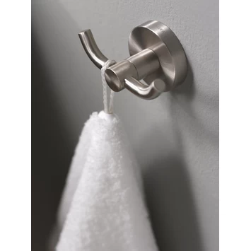 Haceka Dubbele Haak Kosmos Tec RVS. Handige, dubbele haak die werkelijk overal in huis te gebruiken is. Van toilet tot kast of badkamer. De haak is licht gebogen: daardoor blijft alles er netjes aan hangen. Vind je de Kosmos serie ook zo mooi. Combineer dan alle producten van Kosmos. De Kosmos lijn bestaat uit een collectie kranen, douchecabines, douchesets en alle mogelijke accessoires.
