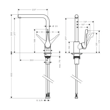 De Hansgrohe Keukenkraan Cento L 1-greeps en een echte eyecatcher in je keuken. De L-vormige uitloop van maar liefst 30,5 cm hoog trekt niet alleen de aandacht, maar biedt je ook veel ruimte in je gootsteen. De 150° draaibare uitloop geeft je zonodig nog meer ruimte en flexibiliteit in je keuken. Handig als je een grote pan of emmer wilt vullen. Met de eenhendelbediening meng je eenvoudig en met 1 hand vooraf de gewenste watertemperatuur. Door de onderhoudsarme keramische schijven kun je de hendel soepel en nauwkeurig afstellen. In de hendel is bovendien een waterbesparende ‘weerstand’ geïntegreerd: tot de weerstand gebruik je de eco-functie en verbruik je minder water. Wens je toch een hardere straal, dan zet je de hendel gewoonweg voorbij de EcoClick open. Ook met de ingebouwde waterbesparende EcoSmart technologie in de kraan zelf bespaar je tot 50% op je waterverbruik. Goed voor het milieu en je portemonnee! De QuickClean siliconennopjes op de uitloop zorgen ervoor dat kalk zich niet hecht en je dat er met je vingers gemakkelijk afveegt. Kortom: deze kwaliteitskraan met het Belgaqua en KIWA keurmerk combineert praktisch gebruik met waterbesparende technieken. Bovendien past deze hoge L-vormige mengkraan in iedere keuken door het strakke ontwerp met de mooie rondingen. De chromen afwerking laten je kraan jarenlang stralen in jouw moderne keuken! Bij aankoop profiteer je tevens van 5 jaar fabrieksgarantie.