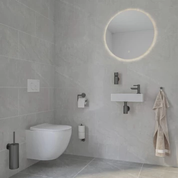 Deze Marho Luxor toiletrolhouder met klep in gunmetal is een stijlvolle eyecatcher in je toilet. De rolhouder is strak vormgegeven en door de klep hangt de toiletrol niet in het zicht. Bovendien zorgen de hoogwaardige materialen ervoor dat het product lang meegaat. De houder monteer je eenvoudig aan de wand met de meegeleverde schroeven en Fischer pluggen. De Luxor serie omvat daarnaast ook een groot aantal andere accessoires in dezelfde stijl voor aankleding van de badkamer en toiletruimte.