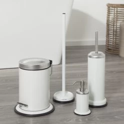 De Sealskin Acero Zeepdispenser Wit is gemaakt van roestvrij staal in een heldere kleur. De onderkant van deze zeepdispenser heeft een rubberen ring die niet alleen decoratief is maar er ook voor zorgt dat de zeepdispenser stabiel blijft staat.