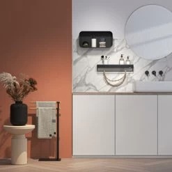 Dankzij de rails onder de plank kun je ook diverse handdoeken kwijt.