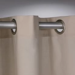 Het Sealskin Douchegordijn Coloris Textiel Ecru 200×180 cm is gemaakt van een mix van katoen en polyester. Deze combinatie van materialen geeft het douchegordijn net wat meer body en een stevige en luxe uitstraling. In de bovenzijde van het douchegordijn zijn ringen van roestvrij staal verwerkt waardoor het gordijn mooi en degelijk opgehangen kan worden.
