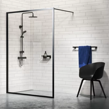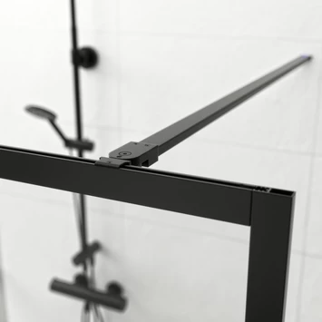 De inloopdouche A3 Contour Zwart 138x200cm heeft een minimalistisch kader wat afgewerkt is in matzwart. De douchewand heeft 6mm dik veiligheidsglas en is voorzien van een antikalk laag. Dankzij deze laag blijft het glas nog langer mooi helder. De inloopdouche wordt geplaatst met een stabilisatiesteun van 1 meter. De steun is tot de gewenste lengte in te korten en ook in een hoek te monteren. Hierdoor past de Inloopdouche A3 Contour Zwart 138x200cm in bijna iedere badkamer.