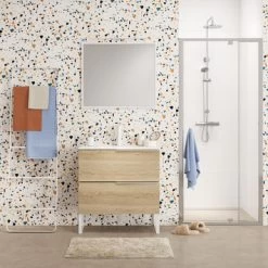 Het Sealskin Spiegeldoosje Grace Wit is gemaakt uit steen. Het doosje zelf is vervaardigd uit wit steen en het deksel heeft een bamboe accent. Het doosje is een sierraad voor je badkamer of make-up tafel. In het doosje kan je sierraden opbergen en in het houten deksel is een spiegeltje verborgen. Door het spiegeltje in de speciale inkepingen te plaatsen, kan het doosje ook gebruikt worden als make-up spiegel. Vervolledig deze Grace serie van Sealskin met de bijhorende zeepdispenser, toiletborstel met houder, beker en tandenborstelhouder.