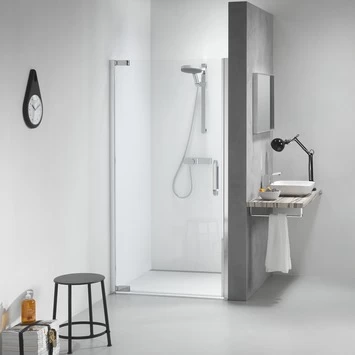 De Sealskin Swingdeur voor Nis Impact 90×195 cm Chroom is een transparante stijlvolle swingdeur met maar liefst 8mm dik veiligheidsglas. Doordat de schroeven onzichtbaar zijn weggewerkt oogt het geheel bijzonder fraai en is de deur eenvoudig schoon te maken.