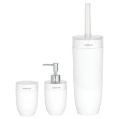 De Sealskin Toiletborstel met houder Bloom Wit is gemaakt uit sterk kunststof. De bovenkant van de wc-borstelhouder is uitgevoerd in glanzend wit en het onderste gedeelte heeft dezelfde basiskleur in een matglas uitvoering. De houder is geschikt om op de grond te plaatsen en biedt ruimte voor 1 wc-borstel. De moderne ronde look zorgt er voor dat dit toiletborstelgarnituur past in elke badkamer of toiletruimte. Deze Bloom serie van Sealskin bestaat nog uit een beker en een zeepdispenser. Deze Bloom sanitaire accessoire reeks is ook verkrijgbaar in het donkergrijs.