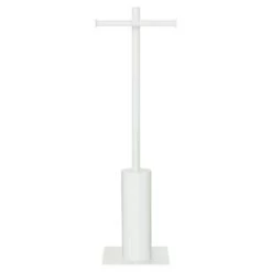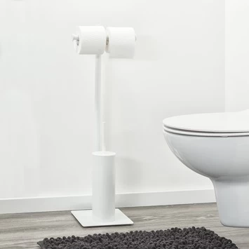 Het Sealskin Toiletrek Tube Metaal Wit is een onmisbare butler in jouw toilet. Het combineert een toiletrolhouder en toiletborstelhouder op een en hetzelfde standaard. Er is zelfs ruimte voor een extra wc rol! Met zijn 76 cm hoog, 26,3 cm breed en 19,7 cm diep past dit vrijstaande toiletrek in ieder toilet en je hebt geen boorgaten nodig om de toiletaccessoires te installeren. Bovendien kun je het altijd neerzetten waar jij het wil. Dat biedt je een hoop flexibiliteit in de kleinste ruimte van het huis. De wit metalen afwerking heeft een stijlvolle uitstraling en past in ieder interieur. Op het rek krijg je 1 jaar garantie. Het is wel belangrijk dat je de set regelmatig schoonmaakt met een vochtige doek, zo heb je lang plezier van jouw eigen toiletbutler.