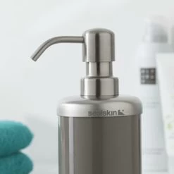 De Sealskin Zeepdispenser Acero Taupe is gemaakt van roestvrijstaal wat een hoogwaardige kwaliteit is en de pomp kun je daardoor prima gebruiken in vochtige ruimtes. De vrijstaande zeepdispenser van 17,8 cm hoog heeft een rubberen onderrand die ervoor zorgt dat het zeeppompje stabiel op zijn plek blijft staan. De zeepdispenser kun je gemakkelijk navullen en overal plaatsen waar je wil. Met de elegante en tijdloze vormgeving in de kleur taupe past de dispenser in ieder interieur.