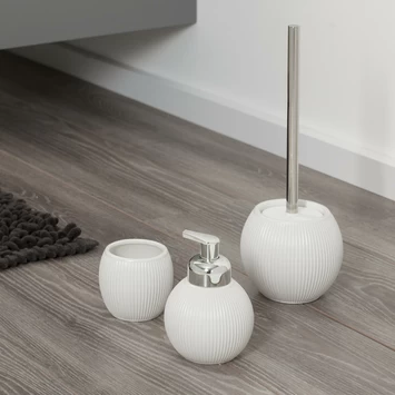 Deze zeepdispenser is gemaakt van hoogwaardig keramiek en hoort bij de Sealskin Convex serie. Deze serie bestaat uit een klassieke stijl die prachtig past bij witte hoogglans tegels. Het zeepompje is handmatig te bedienen en is ook nog eens navulbaar. Op zoek naar een klassieke set voor in de badkamer of toiletruimte? Begin dan met deze Sealskin Zeepdispenser Convex Wit.