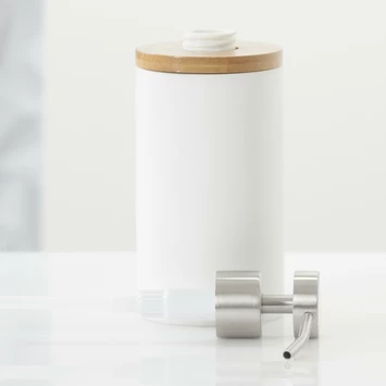 De Sealskin Zeepdispenser Grace Wit is gemaakt uit kunsthars. De afwerking is een combinatie van witte kunsthars en bamboe accenten. Ideaal om een vakantiesfeer te creëren in je badkamer of toilet. Het pompje is handmatig te bedienen en de dispenser is navulbaar. De zeepdispenser is eenvoudig te reinigen met een vochtige doek. Vervolledig deze Grace serie van Sealskin met de bijhorende beker, toiletborstel met houder, tandenborstelhouder en spiegeldoosje.