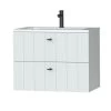 GAMMA’s Style-badmeubelset rechts is 100 cm breed en uitgevoerd in chique eikenzwart. Het moderne badmeubel matcht met uiteenlopende badkamerinterieurs. Of je nu een grote of kleine badkamer heeft, dit badkamermeubel van de serie Style past dankzij de eigentijdse vormgeving en de breedte van 100 cm in bijna iedere badkamer. Het praktische badmeubel biedt genoeg ruimte voor het opbergen van handdoeken en toiletartikelen. De laden en spiegeldeuren zijn allemaal voorzien van softclose ladegeleiders en scharnieren waardoor ze zacht en geleidelijk sluiten. Doordat het zwarte badmeubel rechts van 100 cm is gemaakt van hoogwaardig MDF en grepen van aluminium heeft, is het badmeubel solide en duurzaam. Let op: het kraangat zit aan de rechterkant van het keramische wastafelblad met overloop. Deze eikenzwarte badmeubelset uit de serie Style is daarnaast verkrijgbaar met het kraangat aan de linkerkant van de wastafel.