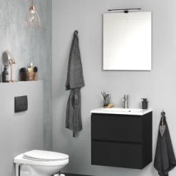 Het greeploze Tiger badkamermeubel Karlo is speciaal ontworpen voor de moderne en industriële badkamer. De volledig voorgemonteerde wastafelonderkast van 60 cm in mat zwart heeft twee ruime lades om al je verzorgingsproducten overzichtelijk in op te bergen. De metalen lades zijn uitgerust met hoogwaardige softclose geleiders waardoor ze altijd geruisloos sluiten. De bovenste lade heeft een mooi afgewerkte sifon uitsparing. Daarnaast bestaat deze set uit een glanzend witte polybeton wastafel. Tijdens het ontwerpproces van de waskom is goed nagedacht over een juiste balans tussen design en functionaliteit. Polybeton wastafels zijn hygiënisch en gemakkelijk in onderhoud. De wastafel heeft een externe overloop en 1 kraangat. Voor het overloopgat wordt een sierring in zowel chroom als zwart meegeleverd waardoor deze altijd mooi aansluit bij je badkameraccessoires.