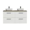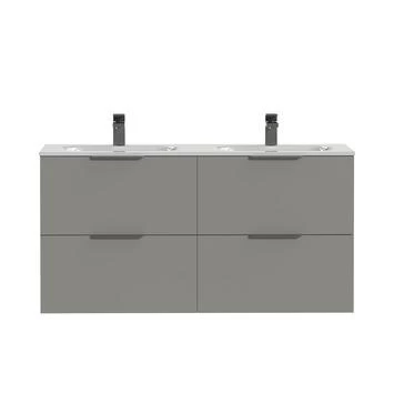 Dit badkamermeubel is onderdeel van de Tiger Studio serie. Dit is een serie met enorm veel varianten met een kleine aanpassing. Denk daarbij aan afmetingen, kleur, vorm, etc. Deze variant heeft een mat-grijze onderkast met 4 lades, met profielgrepen en een softclose ladesysteem. Dat wil zeggen dat de lades altijd zachtjes sluiten. Dit voorkomt schade aan het houtwerk wanneer je per ongeluk de lades te hard dicht doet. De lades bieden voldoende ruimte om handdoeken en andere sanitaire spullen in op te bergen. De onderkast, met een breedte van 120 cm, heeft 2 hoogglans witte wastafels van polybeton. Hoewel deze op de afbeelding misschien met kraan te zien zijn, wordt dit badmeubel exclusief kraan en sifon verkocht. Gelukkig heeft GAMMA ook een breed assortiment met kranen. Dankzij de duidelijke handleiding en meegeleverd bevestigingsmateriaal kun je eenvoudig zelf de montage uitvoeren. Tot slot zit er 3 jaar garantie op alle badmeubelen binnen de Tiger Studio serie. Mocht dit Tiger Badkamermeubel Studio 120 cm Mat Grijs met Dubbele Polybeton Wastafel Hoogglans Wit en Profielgrepen het net niet helemaal zijn, kijk dan vooral nog even verder in de GAMMA webshop. Er is vast en zeker een passende maat en kleurencombinatie te vinden!