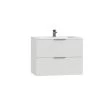 Door het strakke en tijdloze design past dit Tiger Studio badkamermeubel in iedere badkamer. Deze wastafelonderkast heeft 2 ruime lades om alle badkamerspullen overzichtelijk in op te bergen. De lades zijn uitgerust met hoogwaardige ‘soft close’ geleiders waardoor ze geruisloos sluiten. De warme houttint geeft een sfeervol karakter aan het meubel. Daarnaast krijgt het meubel, door de voelbare houtnerf, een mooie natuurlijke uitstraling. De mooie, wit glanzende polybeton wastafel met ovale waskommen en rvs grepen maken deze set compleet.