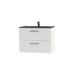 Tiger Badkamermeubel Studio 80cm Hoogglans Wit/matzwart Met Ronde RVS Greep
