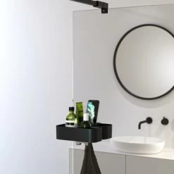 Opbergruimte tekort? Geen nood. Creëer meer ruimte achter de glaswand met de Tiger 2-Store douchemand met klem. Dit product biedt elementen van karakter met slimme en stijlvolle opbergoplossingen. Zo klem je de korf gemakkelijk aan de glaswand, zijn de haken flexibel te plaatsen en is de set voorzien van een universele telefoonhouder. Daarmee geniet je ook tijdens het douchen van je favoriete muziek. 2-Store brengt een moderne look in je badkamer en is gewapend voor een duurzaam bestaan.