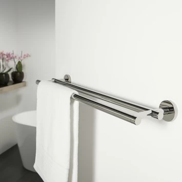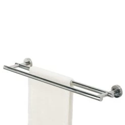 Het Tiger Dubbel Handdoekrek Boston Chroom van de accessoire serie Boston is uitgevoerd in glanzend RVS, en is ook verkrijgbaar in geborsteld RVS. Dit product kan aan de wand worden geschroefd, maar kan ook met behulp van Tigerfix 1 op een gladde en harde ondergrond geplakt worden. Je hoeft dus niet te boren. (Tigerfix is los verkrijgbaar). Er zijn van deze serie diverse sanitair accessoires verkrijgbaar. Dit product maakt deel uit van het Boston totaalconcept, dat verder bestaat uit kranen, badmeubelen, douche accessoires en douchecabines, alles in de Boston stijl.