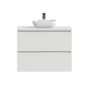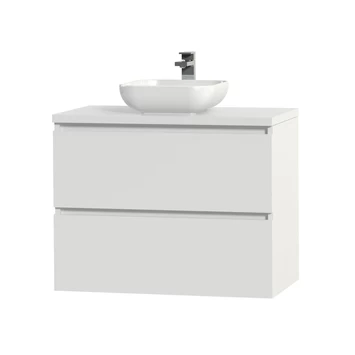 Het greeploze Tiger Karlo badkamermeubel is speciaal ontworpen voor de strakke en moderne badkamer. De wastafelonderkast heeft 2 ruime lades om alle badkamerspullen overzichtelijk in op te bergen. De lades zijn uitgerust met hoogwaardige ‘soft close’ geleiders waardoor ze geruisloos sluiten. Door de mooie heldere witte kleur krijgt het meubel een tijdloze uitstraling. Het wit houten wasblad is reeds voorzien van een uitsparing voor kraan en waskom. De elegante, onderhoudsarme keramische waskom maakt de set compleet.