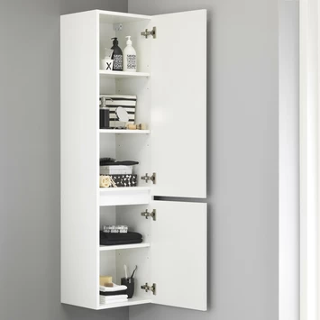De greeploze Tiger Karlo hoge kolomkast is speciaal ontworpen voor de strakke en moderne badkamer en bovendien is wit hoogglans ook een tijdloze kleur. Deze brede kolomkast biedt veel opbergruimte om alle badkamerspullen overzichtelijk op te bergen en heeft 5 legplanken waarvan er 2 in hoogte verstelbaar zijn. De deuren zijn zowel links als rechts monteerbaar en zijn voorzien van hoogwaardige ‘soft close’ scharnieren waardoor ze geruisloos sluiten.