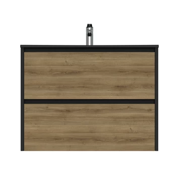 Breng karakter naar de badkamer met de nieuwe Tiger Reverse serie. Reverse is het elegante antwoord op de industriële badkamertrend. Gedurfde lijnen zorgen voor een opvallende, stoere look. De subtiele zijpanelen in zwart en de afwerking in chalet eik brengen een warme sfeer naar je ruimte. Deze greeploze wastafelonderkast van 80 cm heeft 2 softclose lades en is perfect voor het opbergen van je badkamer essentials.