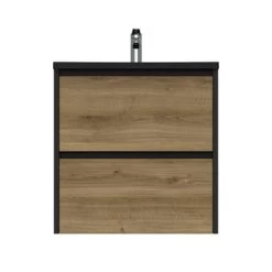 Breng karakter naar de badkamer met de nieuwe Tiger Reverse serie. Reverse is het elegante antwoord op de industriële badkamertrend. Gedurfde lijnen zorgen voor een opvallende, stoere look. De subtiele zijpanelen in zwart en de afwerking in chalet eik brengen een warme sfeer naar je ruimte. Deze greeploze wastafelonderkast van 60 cm heeft 2 softclose lades en is perfect voor het opbergen van je badkamer essentials.