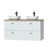 Achter de deuren van deze universele Tiger S-line spiegelkast gaat ontzettend veel opbergruimte schuil. Daarnaast krijgt de spiegelkast, door de voelbare houtnerf, een mooie natuurlijke uitstraling. De deuren zijn voorzien van hoogwaardige ‘soft close’ scharnieren waardoor ze geruisloos sluiten en door de asymmetrische spiegeldeuren zit er geen storende scheidingslijn in het gezichtsveld. Bovendien heeft de spiegelkast 4legplanken in dezelfde mooie houttint. Daarnaast zijn de legborden in hoogte verstelbaar. De deuren zijn zowel links als rechts monteerbaar.