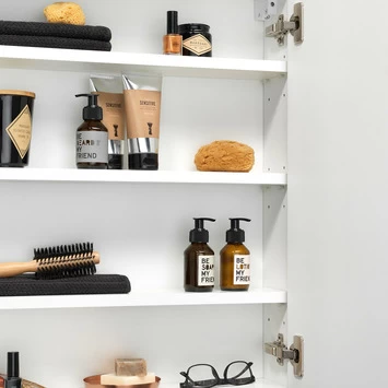 Achter de deuren van deze universele Tiger S-line spiegelkast gaat ontzettend veel opbergruimte schuil. De deuren zijn voorzien van hoogwaardige ‘soft close’ scharnieren waardoor ze geruisloos sluiten en door de asymmetrische spiegeldeuren zit er geen storende scheidingslijn in het gezichtsveld. Bovendien heeft de spiegelkast 3 witte, in hoogte verstelbare, legplanken. De deuren zijn zowel links als rechts monteerbaar.