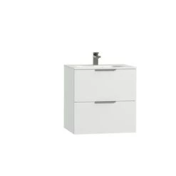 Tiger Studio Badkamermeubel 60 Cm Hoogglans Wit Met Wastafel Polybeton Mat Wit Greep Rvs Plat