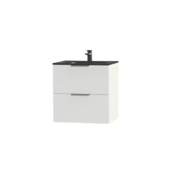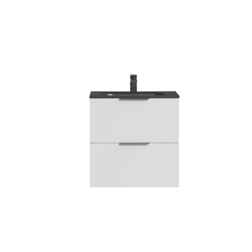 Tiger Studio Badkamermeubel 60 Cm Hoogglans Wit Met Wastafel Polybeton Mat Zwart Greep Rvs Plat