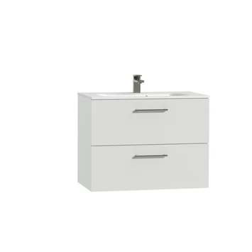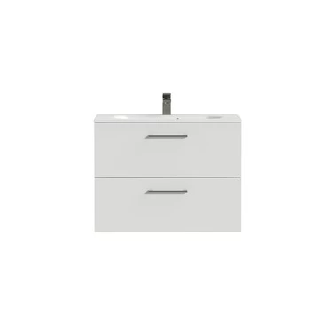 Tiger Studio Badkamermeubel 80 Cm Hoogglans Wit Met Wastafel Polybeton Mat Wit Greep Rvs Afgerond