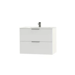Tiger Studio Badkamermeubel 80 Cm Hoogglans Wit Met Wastafel Polybeton Mat Wit Greep Rvs Plat