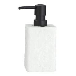 Met de zeepdispenser Villata wit in natuursteenlook creëer je een aangename, gezellige sfeer in je badkamer, toilet of keuken. De zeepdispenser kan gevuld worden met maximaal 300 ml vloeibare zeep of waslotion. De Villata badkamerserie is gemaakt van Polyresin ofwel Polystone; een mix van gemalen natuursteen wat wordt vermengd met een vloeibare kunsthars. De houder is daardoor zo hard als steen, vochtbestendig en kleurecht. Ideaal om in je toilet of badkamer te gebruiken. De praktische zeepdispenser staat ook mooi in de keuken als afwasmiddeldispenser. Je kan de Villata badkamerserie stijlvol uitbreiden met de Villata tandenborstelbeker en de wc-set.